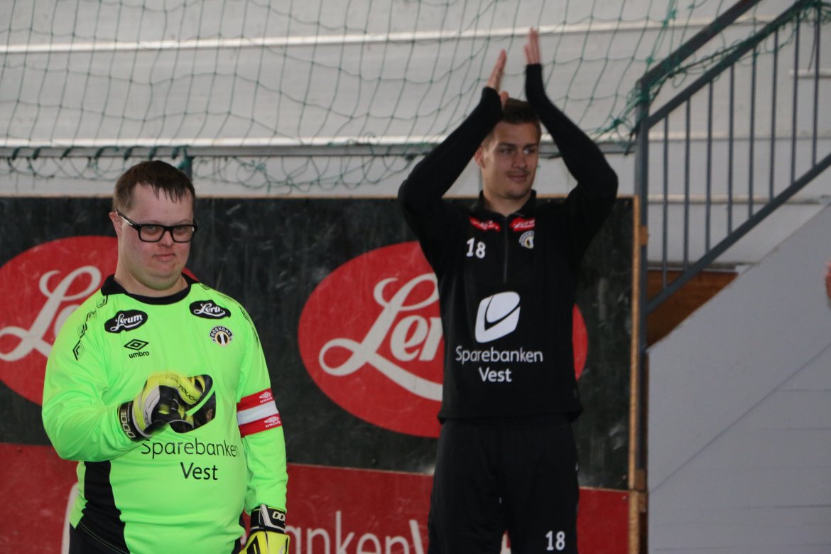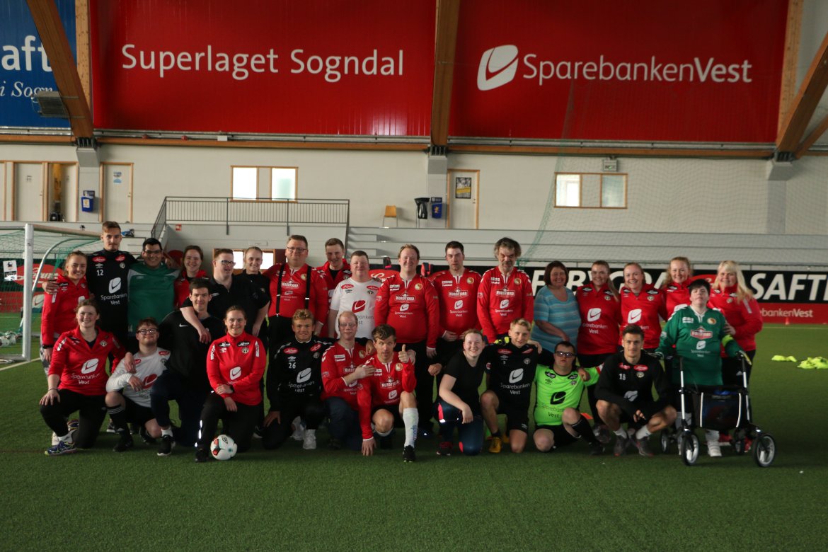 Sognahallen: Søndag 7. april var 14 spelarar frå fleire kommunar i fylket samla til tilrettelagt fotballtrening. "Me bryr oss" Biletgalleri