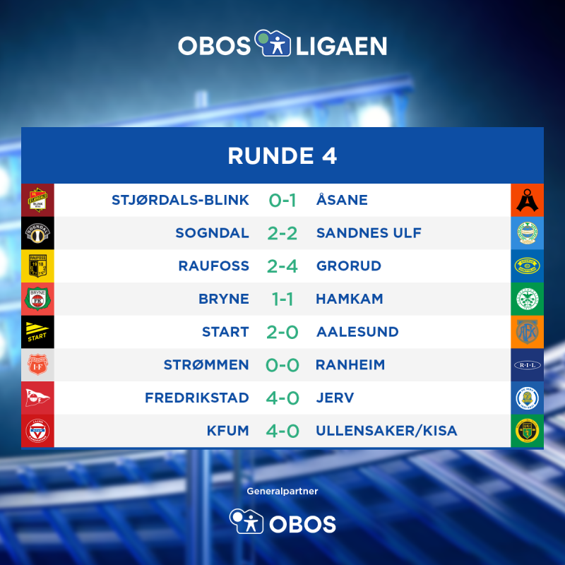Slik gjekk det i den fjerde runden av årets OBOS-liga.
