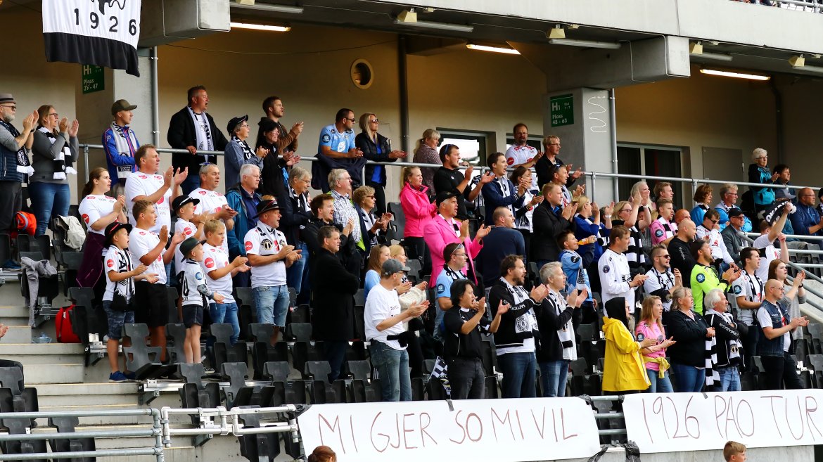 Me håpar at det blir bra trøkk på og utanfor bana i dag, me gler oss til fotballfesten!