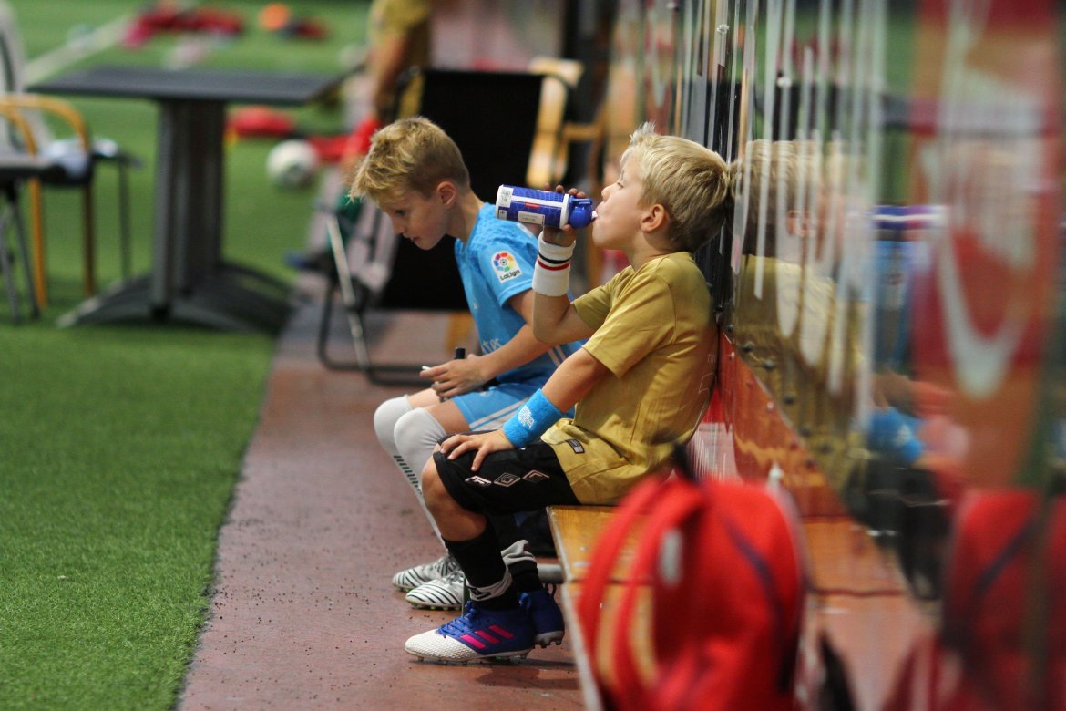 Det er godt med pause for små bein. Då passar det bra å heie på andre lag (grupper). Heia Brann og heia Real Madrid ropar smågutane iherdig.