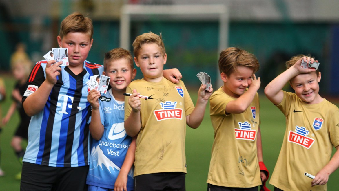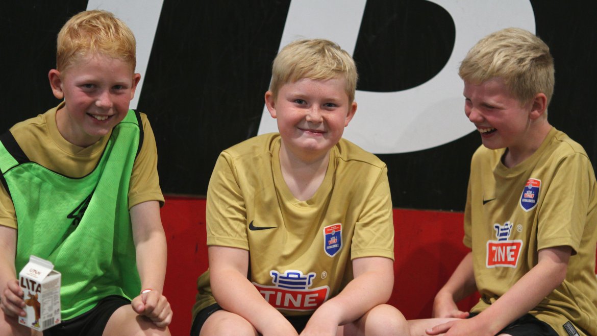 Denne veka er det kring 80 ungar som deltek på Tine Fotballskule. Spelarane er mellom sju og elleve år gamle.