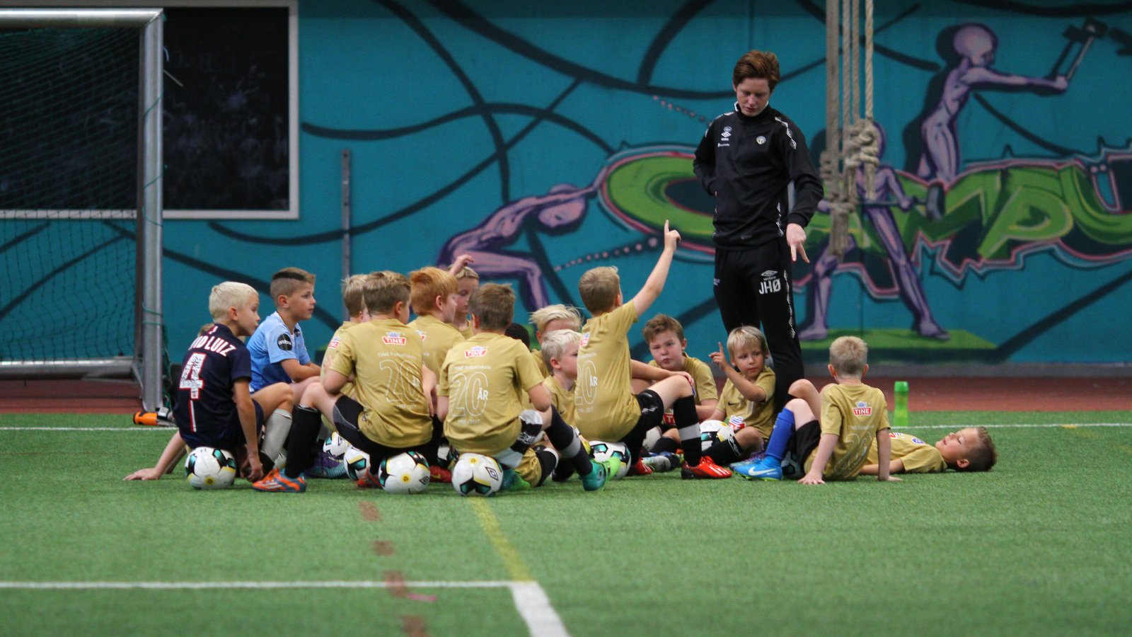 Dei yngste borna har enklare øvingar enn dei større. Smålagsspel, leik og fleire pausar pregar også aktiviteten deira. Det er dermed ikkje sagt at det manglar energi og engasjement her.