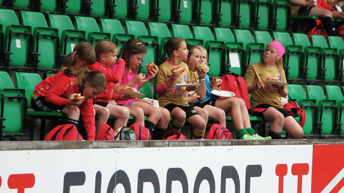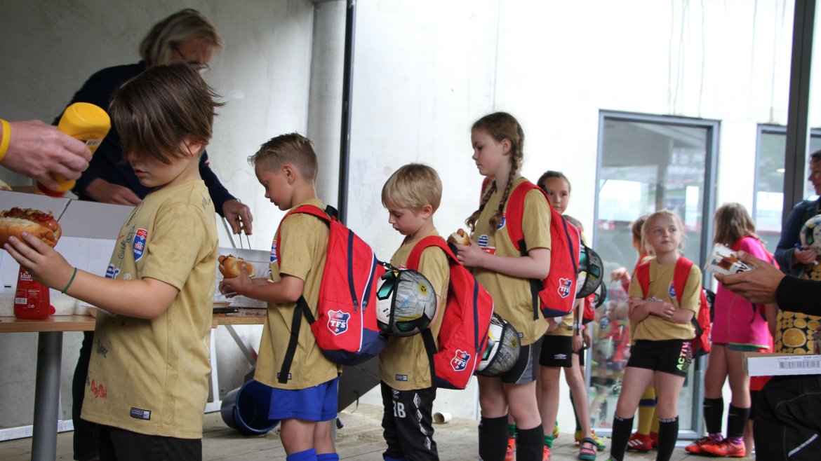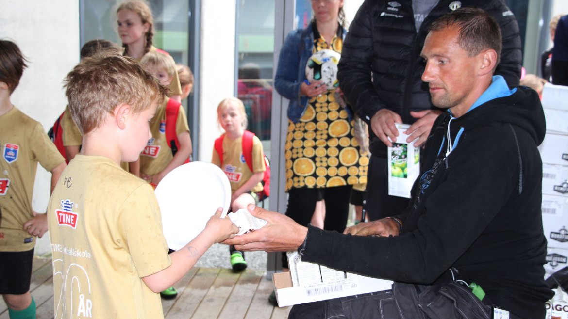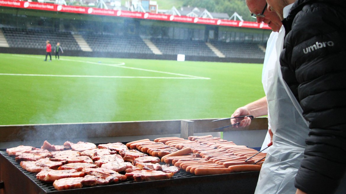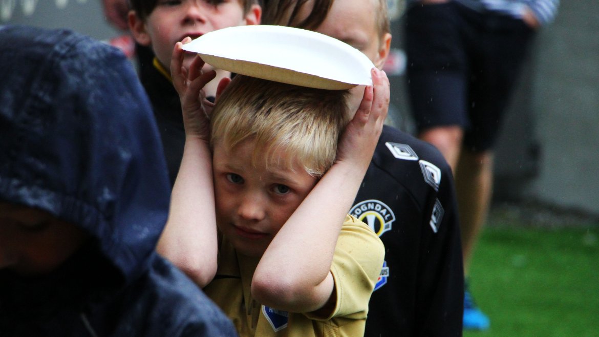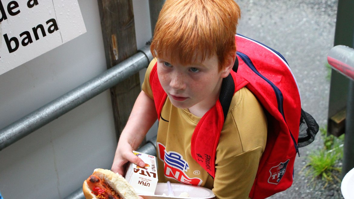 Trass regn som bøtta ned på slutten av siste Fotballskuledag denne veka, så kosa ungane seg med grillmat. A-laget var med. Ei heil veke med fotball, vener, samspel, liv og røre vart avslutta med diplomar til borna i Sognahallen. Takk for denne gong!