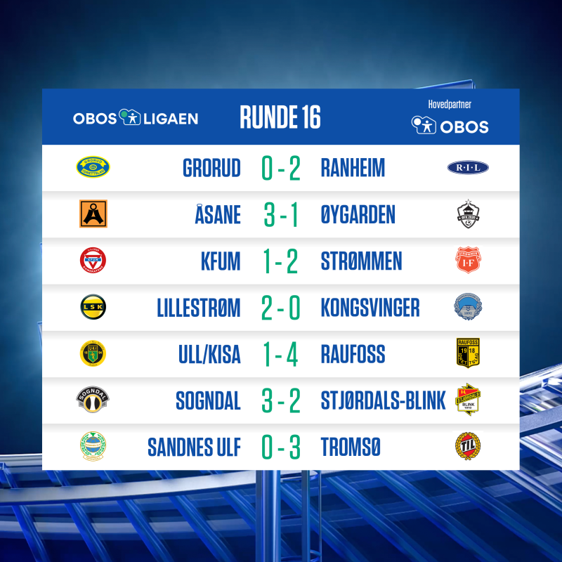 OBOS-ligaen, 16. serierunde, Fosshaugane Campus, måndag 21. september