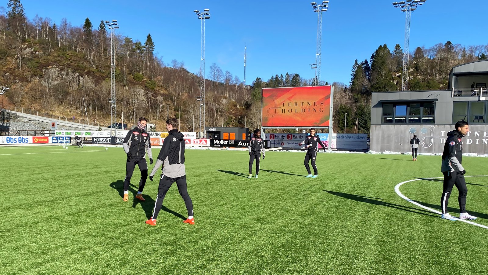 Me er klare for treningskamp mot Åsane, avspark på Åsane Arena er klokka 13:00. Då me ankom arenaen var det reine snøstormen her, akkurat no er det blå himmel og sol! Karane er i gang med oppvarminga.