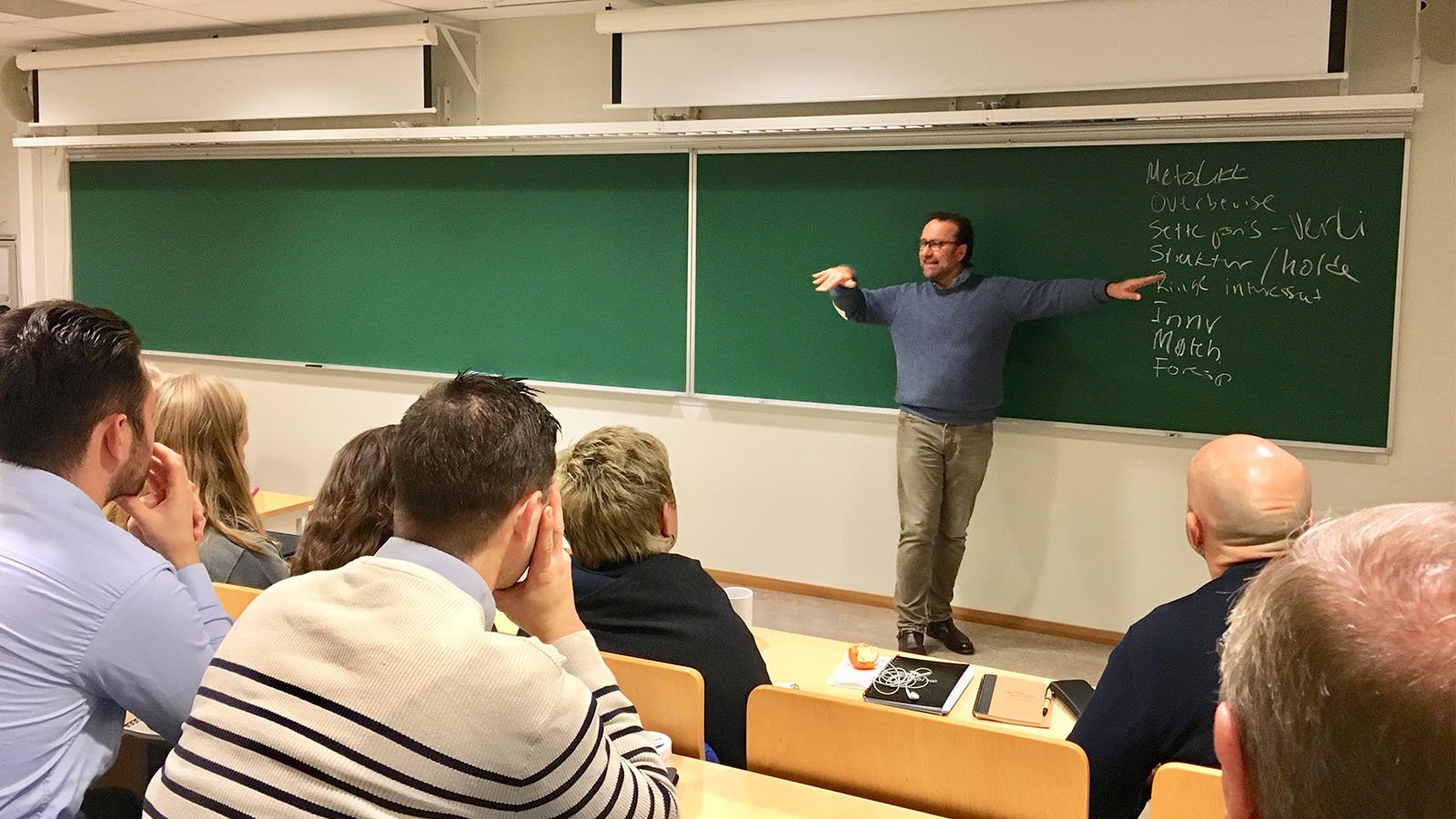- Dette har vært ein spennande dag. Eg må jo seie at det er ein utfordring å halde kurs for ei gruppe som er samansett av så mange ulike bransjar. Men samspelet i dag fungerte svært godt, det var ein fin nerve i rommet og mange gode spørsmål, fortel Richard Jacobsen.
