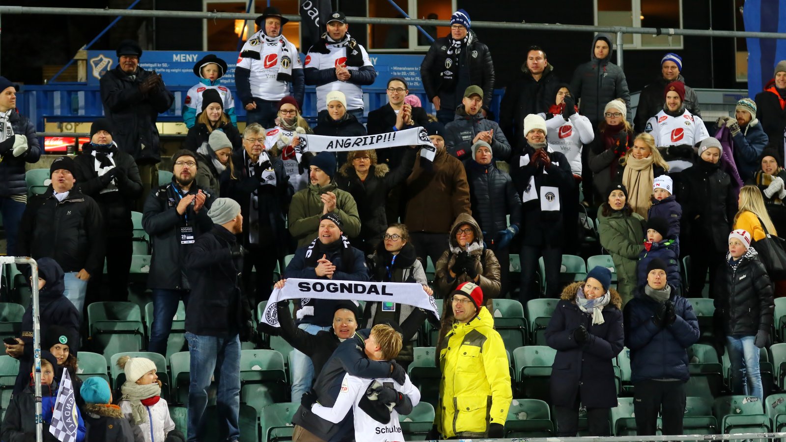 Me snakka med ein glad bergensar etter kampen. Joachim Soltvedt kom inn, og hans første spark på ballen gjekk i mål.