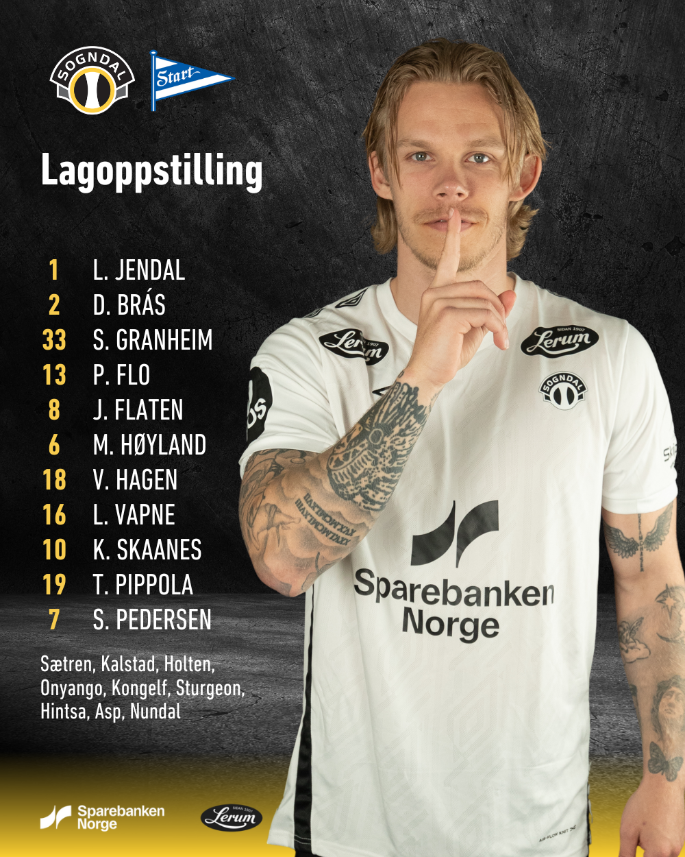 Her er dei utvalde til dagens kamp mot Start A-laget