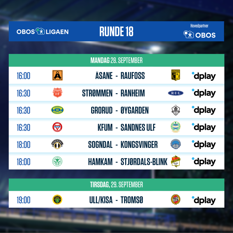 Runden er litt amputert då Lillestrøm sin kamp mot Jerv er utsatt. I dag har me seks kampar og ein i morgon. Slik går runden
