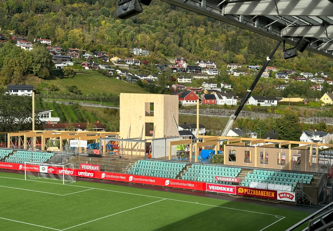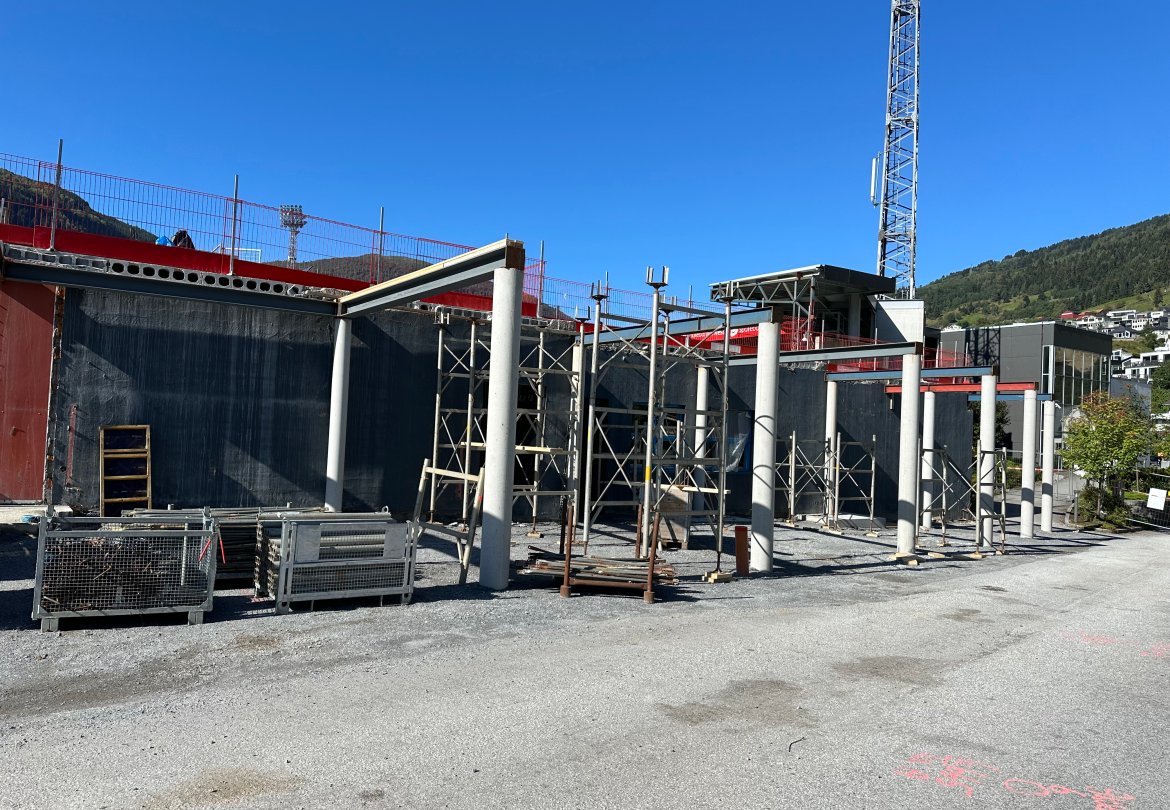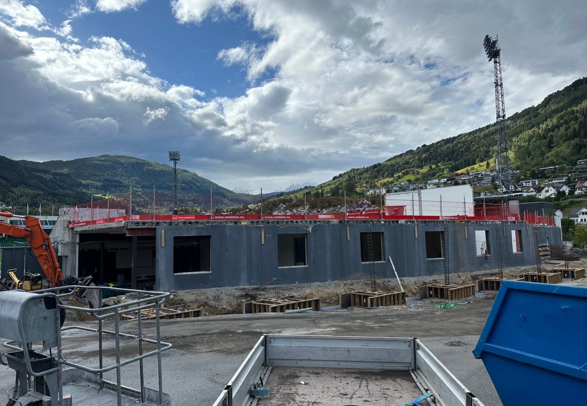 Det har kome nokre spørsmål om selskapet byggjer ny tribune i dette bygget. Det gjer dei ikkje. Det nye bygget er eit reint næringsbygg med eksisterande tribune i front mot bana. Det vil seie at sjølve tribuna blir den same som før, men at bygget bak vil huse nye fasilitetar.