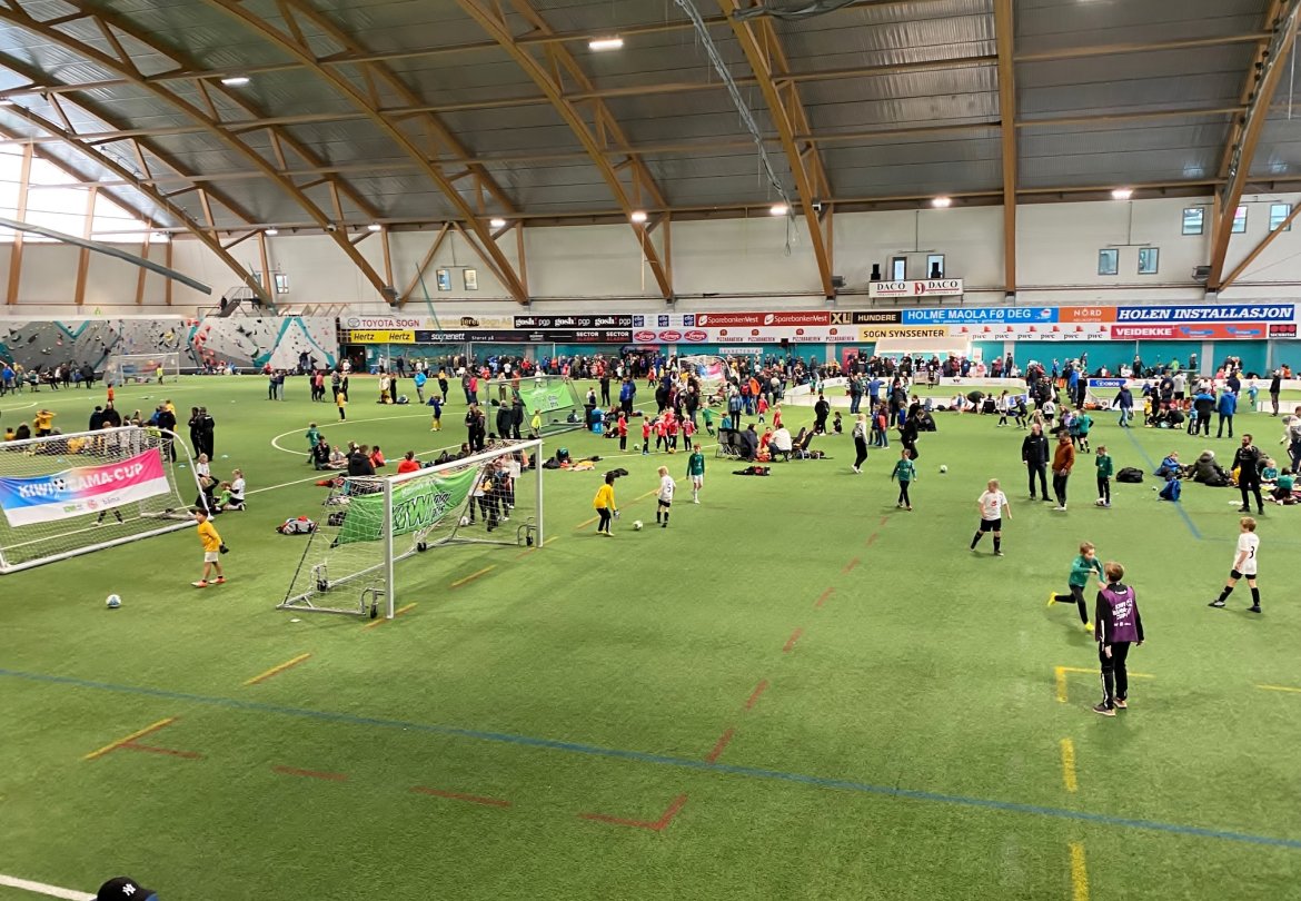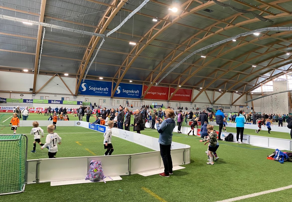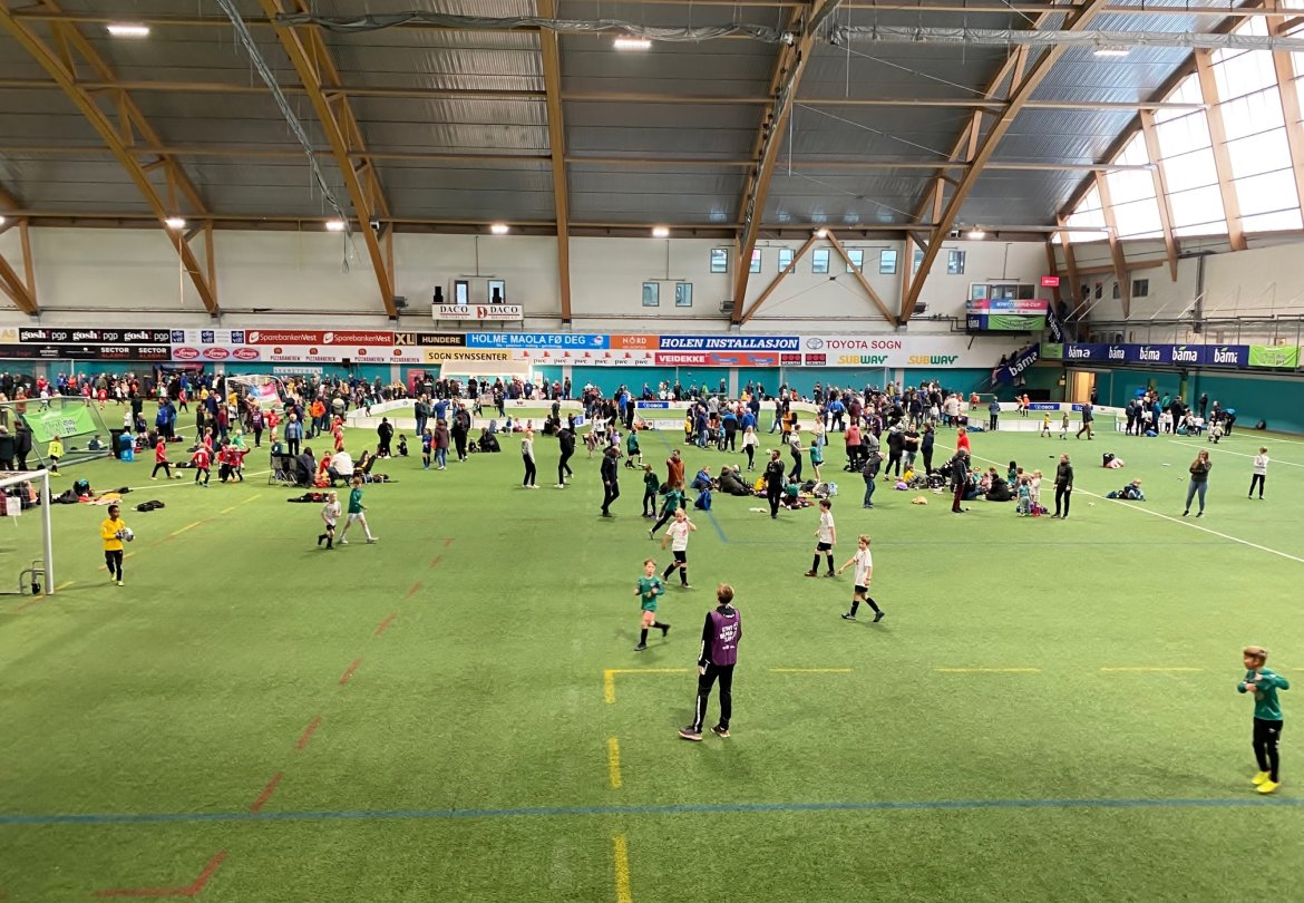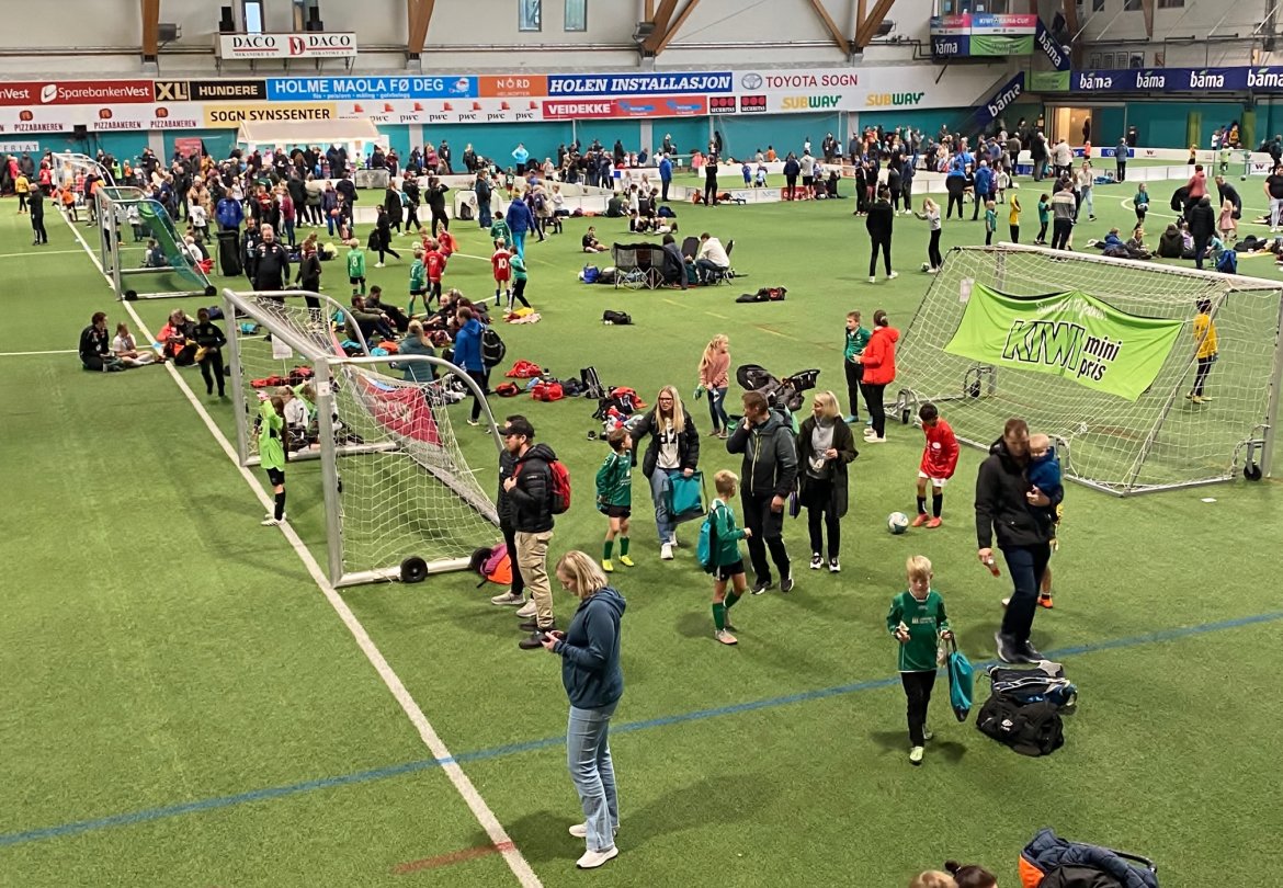 126 påmeldte lag og 1150 unge fotballspelarar i alderen 6-12 år spelte tilsaman 252 kampar i Sognahallen og på Fosshaugane Campus.