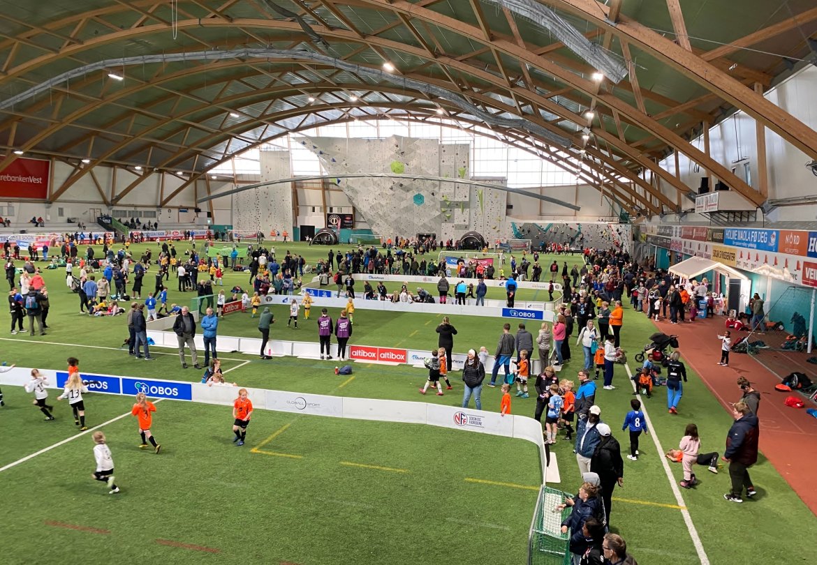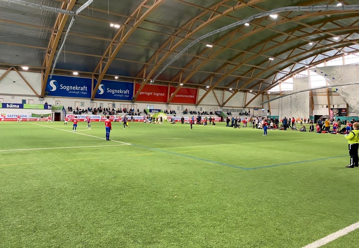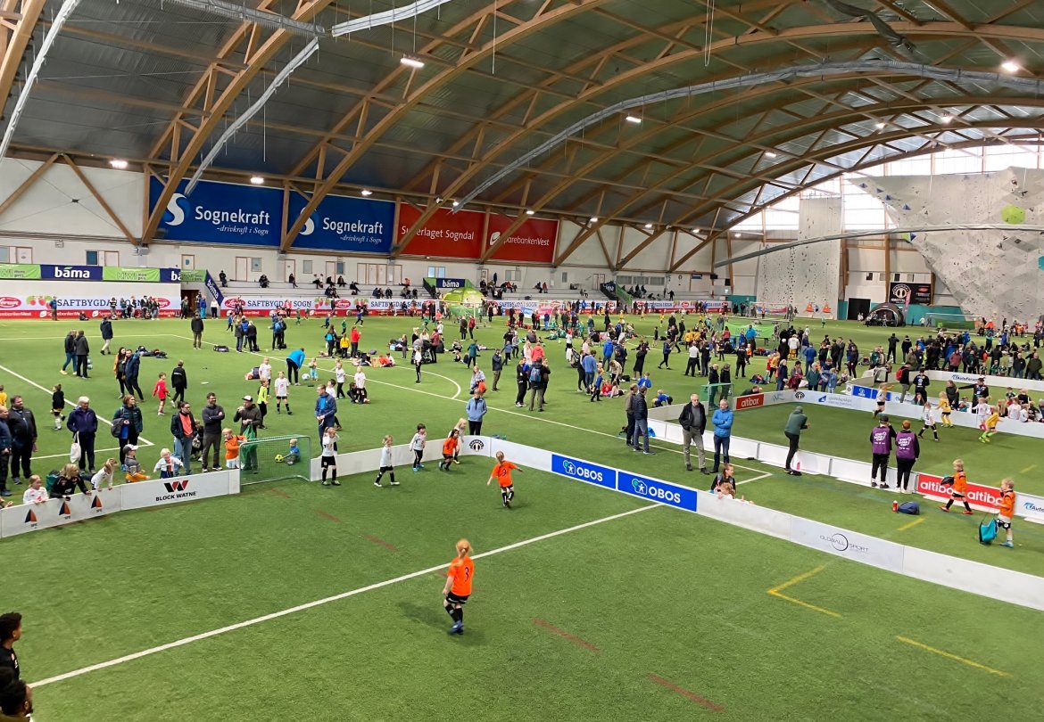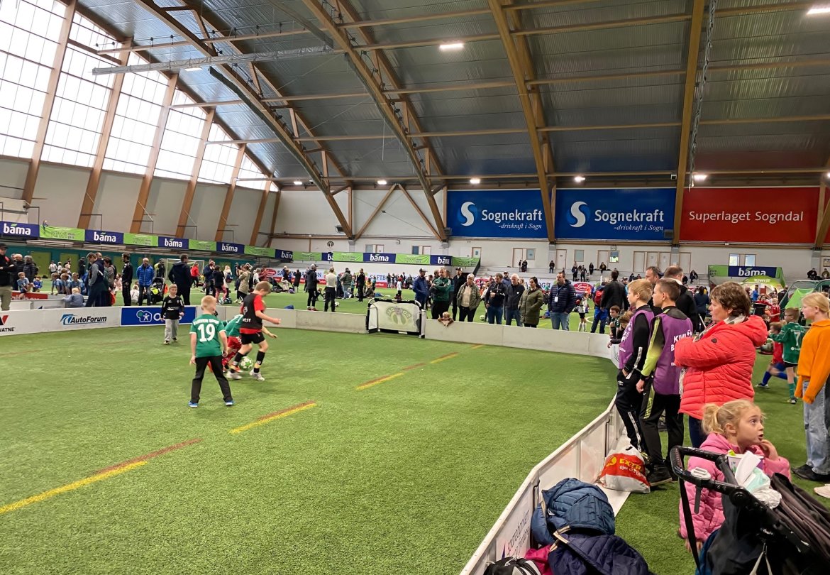 126 påmeldte lag og 1150 unge fotballspelarar i alderen 6-12 år spelte tilsaman 252 kampar i Sognahallen og på Fosshaugane Campus.