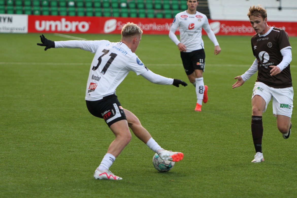 Den fyrste omgangen var heilt utan mål, men begge lag hadde nokre sjansar å visa til. Ingen av dei var farlege nok, og då gjekk laga til pause med 0-0. I andre omgang skulle det koma fleire sjansar, og til slutt også mål. Etter 61 minutt spelt hamna ballen hjå Sondre Granaas som hamra ballen fordi Renze Fij.
